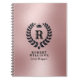 Shiny Rose-Gold Background Black Laurel Wreath Notebook