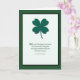 A sticking beautiful simple card with a green shamrock placed in a white background with a black and green border. This card includes an Irish blessing on the front and is suitable for any friend or family member. Personalize the recipients name and your name.