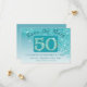 The card features a chic Falling Teal Blue Glitter on a Teal Blue Gradient with Shiny Stars. The Gold and Teal Blue Glitter Number 50 is displayed on a colorful rectangle. It is unique and will make the announcement of your 50th Birthday extra special.
