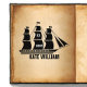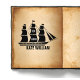 Simple san sarif ex libris stamp with beautifully scripted calligraphy personalized with your name and wrapped in a ship silhouette.