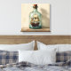 A canvas art with an illustration of a ship in an antique bottle. Frame it and it will be lovely for a man cave or office.