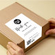 Customize these white minimalist "Shipping Logo QR Code Package White Box Seal Labels" for business packaging, featuring a black business logo, the message "Thank you for your order" in a beautiful script, your custom message, QR Code, and social media handles (Instagram, Facebook). Stickers are intended to go vertically over the lid of the packaging box. Please get in touch with the store designer for further customization if needed.