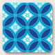 Coasters in traditional Japanese Shippo, or "seven treasures" pattern of interlocking circles with a central flower motif - flowers in white and pale blue with a dark indigo and cerulean blue patterned background