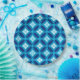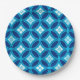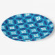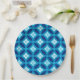 Paper Plates in a traditional Japanese Shippo, or "seven treasures" patterned of interlocking circles with a central flower motif - flowers in white and pale blue with a dark indigo and cerulean blue patterned background