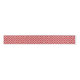 Ribbon in a traditional Japanese Shippo, or "seven treasures" pattern of interlocking circles with a central flower motif - deep Chinese red on a white background
