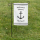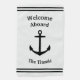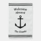 Welcome passengers to your boat with a stately white flag bearing a black anchor emblem and your custom greeting.