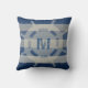 Design features a faded-look white and blue canvas textured-look striped pattern overlayed with a crackled and pixelated, weathered-look ship's wheel and a distressed initial for you to personalize. Design is repeated on back.