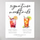 This chic signature mocktails menu poster features simple black tyopgraphy above 2 cute drinks and their ingredients for your wedding bar. A Shirley Temple and non-alcoholic Arnold Palmer drink add a cool flair to your bar menu. Complete with the couple's names and date for their reception.