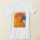 My overall review is that the T-shirt is nice, it fits true to size however the font is significantly smaller than advertised and you can't read it. The printing is unreadable and there is a strain to read it. It does not look like the advertised product. Maybe the shirt color is darker or a larger more visible font should have been used. Photos with and without flash and font is barely legible.