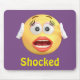 The classic yellow emoji "Shocked" girl cartoon facial expression emoticon with the word shocked written below the face. Pick up some of these quality mouse pads today!
