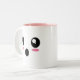 This mug shares the love for emoji's expressing a feeling of "shock" with a pink blushy cheeks.