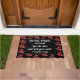 Stylish black SHOE-FREE HOME Welcome Doormat, designed to encourage visitors to remove their footwear before entering your home. Especially useful if you have babies crawling around the floor. The wording reads SHOE-FREE HOME and LOSE YOUR SHOES AND ROCK YOUR SOCKS to encourage visits to remove their footwear. All text is customizable so you can edit the text and add your family name. This Welcome doormat would make a great house-warming gift or for new parents. Matching hall/lobby accessories are available.