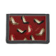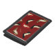 FULL DISCLOSURE - THIS REVIEW IS BY THE ARTIST WHO CREATED THIS BIRD DESIGN: I love all the different compartments on the wallet, and the color, which is a brighter red than it seems from the pictures shown. However, this wallet has trouble closing. The clasp is positioned so that even when there is just a few credit cards in it, it is hard to close. With a normal amount of items in it (a card in every slot, some change in the purse, and some bills in the billfold), it will not close at all. I'm rather disappointed in this. This printing is great.