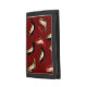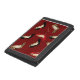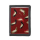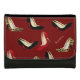 Fashionable lady's black wallet, with a red background, on the front flap, with graphics of jaguar print, black, and red stiletto high heels. Tan colored text, on the flap, is ready to personalize. Makes a great gift idea to any Fashionesta.
