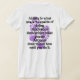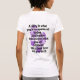 My overall review is that the T-shirt is nice, it fits true to size however the font is significantly smaller than advertised and you can't read it. The printing is unreadable and there is a strain to read it. It does not look like the advertised product. Maybe the shirt color is darker or a larger more visible font should have been used. Photos with and without flash and font is barely legible.