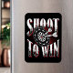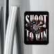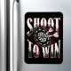 Showcase your competitive spirit with the DartRise 3” x 4” Flexible Photo Magnet, featuring the bold phrase "Shoots To Win." This magnet embodies your determination and focus on achieving victory in every dart game. Display it proudly on your fridge or any metal surface as a daily reminder of your commitment to excellence. It also makes a motivating gift for fellow dart players who strive for success with every throw.