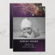 Plum purple and gold newborn baby photo birth announcement with twinkling shooting star and starry night sky