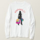 I love this shirt. I had written to the artist asking her if this picture was available on a shirt, and she wrote me back telling me where I could find the shirt. These shirts can be custom made to have a different saying. I loved this saying and went with it. The artist wrote me back later to tell me that she had seen my order go through. How's that for service? Pretty special. It's just as displayed. Perfect!