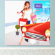 Getting into her car, talking on her cell- this shopping girl has finished her day in the mall- - contemporary in style and fun to admire - Perfect for office , home or lobby. Can easily be sized down -