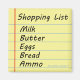 Honey, we're out of... This funny fridge magnet shopping list will remind you to pick up the essentials--milk, butter, eggs, bread and ammo!