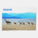 Cute Canada Geese (Branta canadensis) goslings are escorted along the shoreline of Lake Pend Oreille in northern Idaho by an adult. Customizable text reading "IDAHO" also appears. Customize further by adding your own additional text. This is a typical scene at City Beach park in Sandpoint.