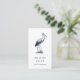 Elegant vertical business cards for your coastal based bed and breakfast, inn, hotel, or other business feature a vintage etched style egret bird illustration with your name and/or business name beneath. Personalize the reverse side with your contact information, including two social media icons and a template field for your social media username, in white on rich navy blue.