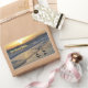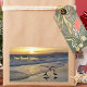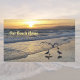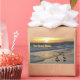 Shorebirds play in the surf as the sun sets on California mountains. Edit the text to add your family name, beach house name, or favorite phrase, or just delete the text. The wood box stands on its own or you can hang it.