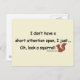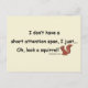 "I don't have a short attention span, I just... Oh, look a Squirrel!" Funny saying / quote about often being distracted and/or forgetful. Black text / letters with a light beige / brown background that you can change to any colors.