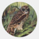 A short-eared owl standing on grass in a marsh in a vintage illustration from a 1922 book on natural history.