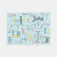 This cuddly short baby name pattern baby blanket features a trendy and popular baby boy or neutral nursery color shades of blue, coral, yellow, blue, and burgundy on a light blue background with your baby's name in a typography pattern of different fonts and colors. Great gift for the baby shower and the new baby boy or girl!