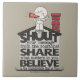 Little Boy is seen sitting on a rooftop, he holds a megaphone and looks to be, passionately, sharing a message. Illustrator, Christie Black, has fashioned the text of the quote by David A. Carrizales into the shape of the house topped with a roof and chimney.