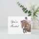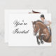 Original fine art design of a horse and rider by designer Carolyn McFann of Two Purring Cats Studio on quality and customizable party invitations and more for equestrians and equine fans.