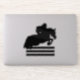 A vinyl decal with a horse and rider silhouette featuring an equestrian rider on a show jumper / hunter jumping over a fence.