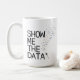 A design featuring the phrase "Show Me the Data." A perfect gift designed to ignite a passion for analytics and the power of information. Illustrated on the mug is a whimsical cartoon wand, emanating a burst of magic-like symbols. The magic is displayed with the default colors commonly associated with data visualizations—blue and orange—symbolizing the transformative nature of data-driven insights.