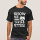 My 11 yo wore adult XL (5’7” 165#). The 8yo is small framed. She wore adult small and tied it in the back. Grandma wore adult large with long sleeve shirt underneath. Tall girl adult medium. Dark haired male adult large. Good quality dark Heather gray, Gildan brand shirt. -it was next up from basic choice and cost about $20 per shirt. Not too thick or thin. Washed and dried well, no major shrinkage. Not see-through. Can wear a bra under it fine. Screen print is just as shown and well done, front and back.