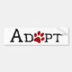 A clever bumper sticker in support of cat adoption with the word Adopt and the "O" replaced by a paw print in red.