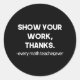 Show Your Work Thanks Funny Math Teacher Quote Classic Round Sticker