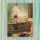 This whimsical French postcard illustrates a Victorian version of a bridal shower. It is a perfect image for invitations, postage, notebooks, journals, posters and bridal shop decor. Coordinating marble paper accents the chromolithograph image. Add your personal touch for a fun and unique bridal shower message.