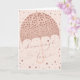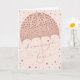 This pink bridal shower card features an umbrella made of flowers and beautiful script type reads "Showering you with love" The inside reads "Wishing you love and happiness, today, on your wedding day, and in the many years to come"