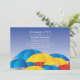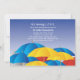 A colorful bridal shower invitation featuring open umbrellas against a light rain.