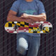 High quality maple board with rad graphics! Wheels and trucks available for additional cost. Drop in with Maryland Style!