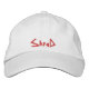 The design was easy to do with a number of options both the hat style, color and so forth. These aren't some printed letters, these are the real deal stitching. The two hats arrived quickly. I've used Zazzle in the past for shirts a number of times and this is the first time for a hat. Zazzle is absolutes the best in every respect; customer service, product selection and results. The embroidery was just right. My artwork was turned into a professional look thanks to Zazzle.