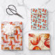 Sheets of wrapping paper with shrimp / prawns design. Light colored backgrounds of pale blue, off white, and pink, on three sheets with shrimp patterns in small to large sizes.