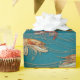 Teal blue wrapping paper on a roll with shrimp pattern. Shellfish design with large and small shrimp cover paper to use for any occasion.
