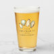 These cheeky wedding favor bar glasses feature a group of soft cream and aqua watercolor oyster and pearl illustrations, with "I got shucked up at the [name] wedding" in classic navy blue lettering. A perfect punny choice for beach themed, summer, or nautical weddings, you can easily personalize these coastal wedding beer glasses with your name.
