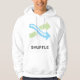 The shuffle icon with green and blue arrows and the word shuffle. This design looks really effective on this Mens Hoodie