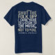 A dark t-shirt with a practical purpose: Make the person sitting behind you keep quiet during concerts. Do you really want to know where they ate dinner? Or whether they hate their job? And do we need to listen to their cell phone conversations with their dermatologist? Will they ever find a solution to their itching? This shirt may help.