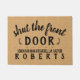 Classic and funny doormat phrase - "shut the front door" text with your personalized family name
