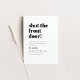 Here at Zazzle we provide a number of mailing accessories that can match your Shut The Front Door Housewarming Party Invitation for almost every event such as birthdays, weddings, and parties. You can choose from popular mailing accessories to go with your invitations including save the dates to send out ahead of your invitations, embossers for unique prints, return address labels, and more. With our large array of products and our design tool, it’s easy to create cohesive designs that will set the tone for your special occasion.