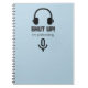 This spiral notebook features headphones, a microphone, and reads "Shut up I'm podcasting."
